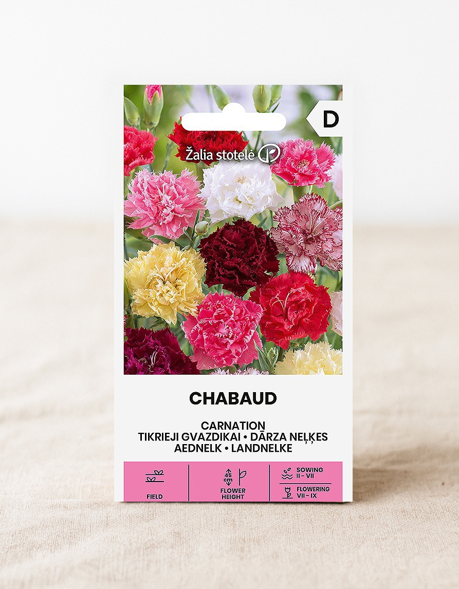 Aednelk ‘Chabaud’ on kaunite täidisõieliste 4–7 cm õitega lõhnav suvelill, mis sobib hästi nii peenrasse kui ka lõikelilleks. Külv varakevadel annab õisi suve esimesel poolel, kesksuvel külvates õitseb taim pigem suve lõpus ja varasügisel. Võib kasvatada üheaastasena, kuid talvitumisel toimib ka kaheaastasena.