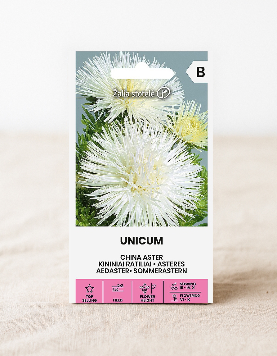 Hiina aedastri seemned ‘Unicum’ valge
