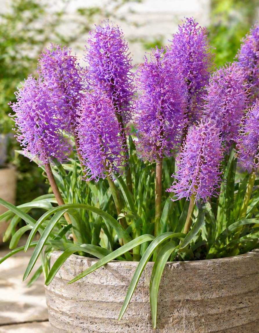 Muscari comosum ‘Plumosum’, tuntud ka kui suleline kobarhüatsint, kasvab tavalisest muskarist kõrgemaks ning võib ulatuda umbes 30 cm kõrguseks. Tugevad püstised varred kannavad hiliskevadel suuri kohevaid õisikuid, mis püsivad dekoratiivsed ajal, kui varasemad kevadlilled hakkavad juba taanduma. See teeb sordist väga hea valiku peenrasse, kus soovid kevadist õitsemist veidi pikendada.