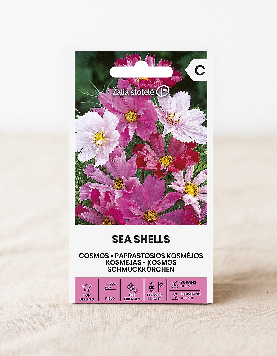“Sea Shells” on kõrgekasvuline, õhulise kujuga kosmosesort, mille dekoratiivsed, torujate kroonlehtedega õied paistavad silma iga peenra või lõikelillekimbu seas. Taime kõrgus ulatub kuni 120 cm-ni ning õitsemine kestab juunist juulini. Õied on mitmevärvilised ja rikkaliku õitsemisega.