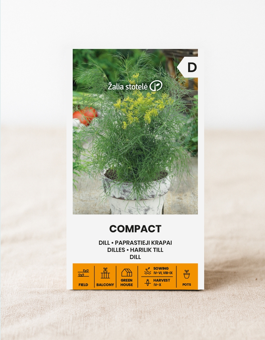 ‘Compact’ on varajane ja saagikas tillisort, mis moodustab tumerohelise lehestikuga tiheda ja madalama kasvuga taime. Sobib suurepäraselt kasvatamiseks nii potis, aknalaual, rõdukastis, kasvuhoones kui ka avamaal. Tänu kompaktsele kasvule annab rohkelt peenikesi, aromaatseid lehti ka väiksel pinnal.