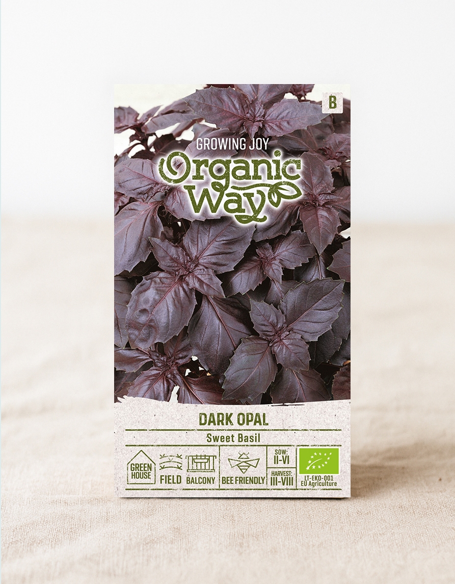 ‘Dark Opal’ on dekoratiivne tumelillade lehtedega basiilikusort, mis ühendab kauni välimuse tugeva aroomi ja iseloomuliku maitsega. Sobib kasutamiseks värskelt ja kuivatatult — salatites, pestos, pastades, marinaadides ja garneeringuna. Väga efektne maitsetaim, mis sobib hästi ka pottidesse ning rõdukasti kasvatuseks.